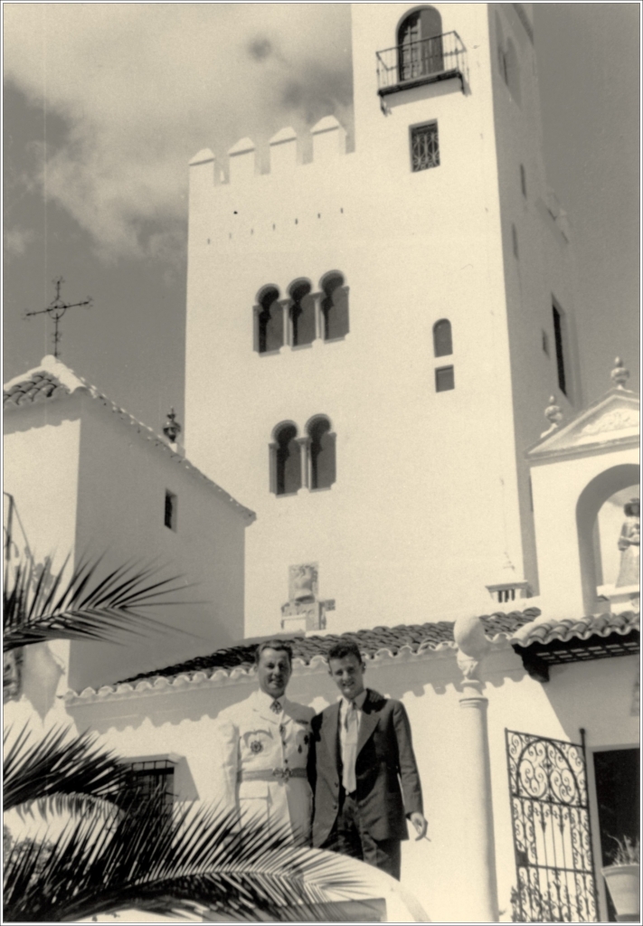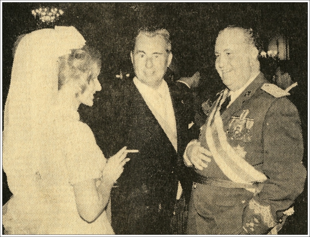 Le colonel Teodoro Pérez de Eulate (entretemps général de brigade de l'Armée de l'air) en conversation avec Léon Degrelle dont il est un ami proche, le 9 octobre 1969, à l'occasion des noces de sa fille cadette, Marie-Christine, dont il fut –tout comme le comte de Mayalde et les ministres Serrano Súner et Fernandez Cuesta– un des témoins de mariage (Kwik, 18 octobre 1969; il avait déjà été, le 9 janvier 1960, un des témoins au mariage de Godelieve, troisième fille du châtelain de Constantina). Ami proche de Léon Degrelle, il accueillit son fils en 1957 en même temps qu'il facilita l'incorporation de Jean-Louis Urraca, le fils de son amie Hélène Cornette, parmi les conscrits de la base aérienne de Séville (ce blog au 12 mai 2025). Teodoro Pérez de Eulate sera également le président du conseil d'administration de la société immobilière Inmuebles Andaluces, fondée en 1958 par Léon Degrelle pour la construction des maisons qui devaient favoriser le tourisme social de Constantina et qui s'avéreront un gouffre financier précipitant sa faillite en 1963.